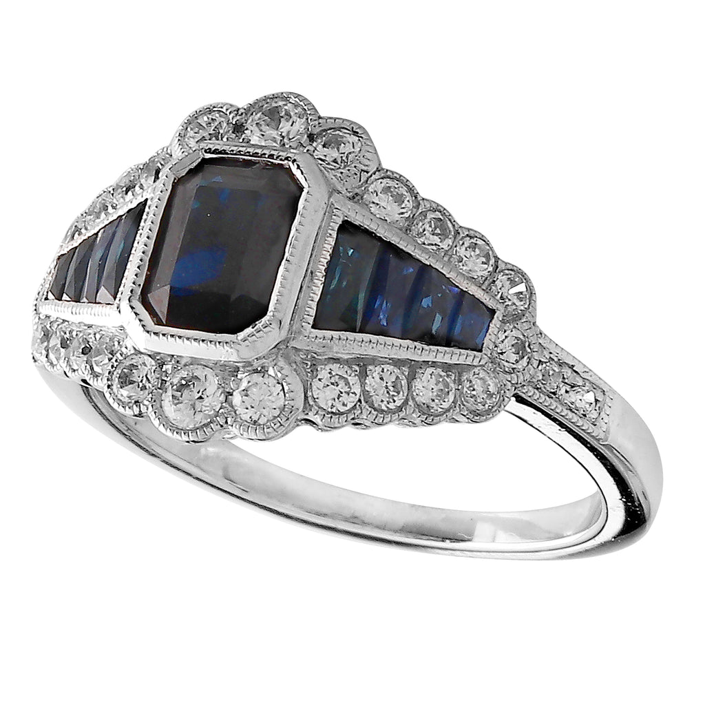 Bezel Set Baguette Cut Sapphire Alternating with Round Diamonds Eternity Band