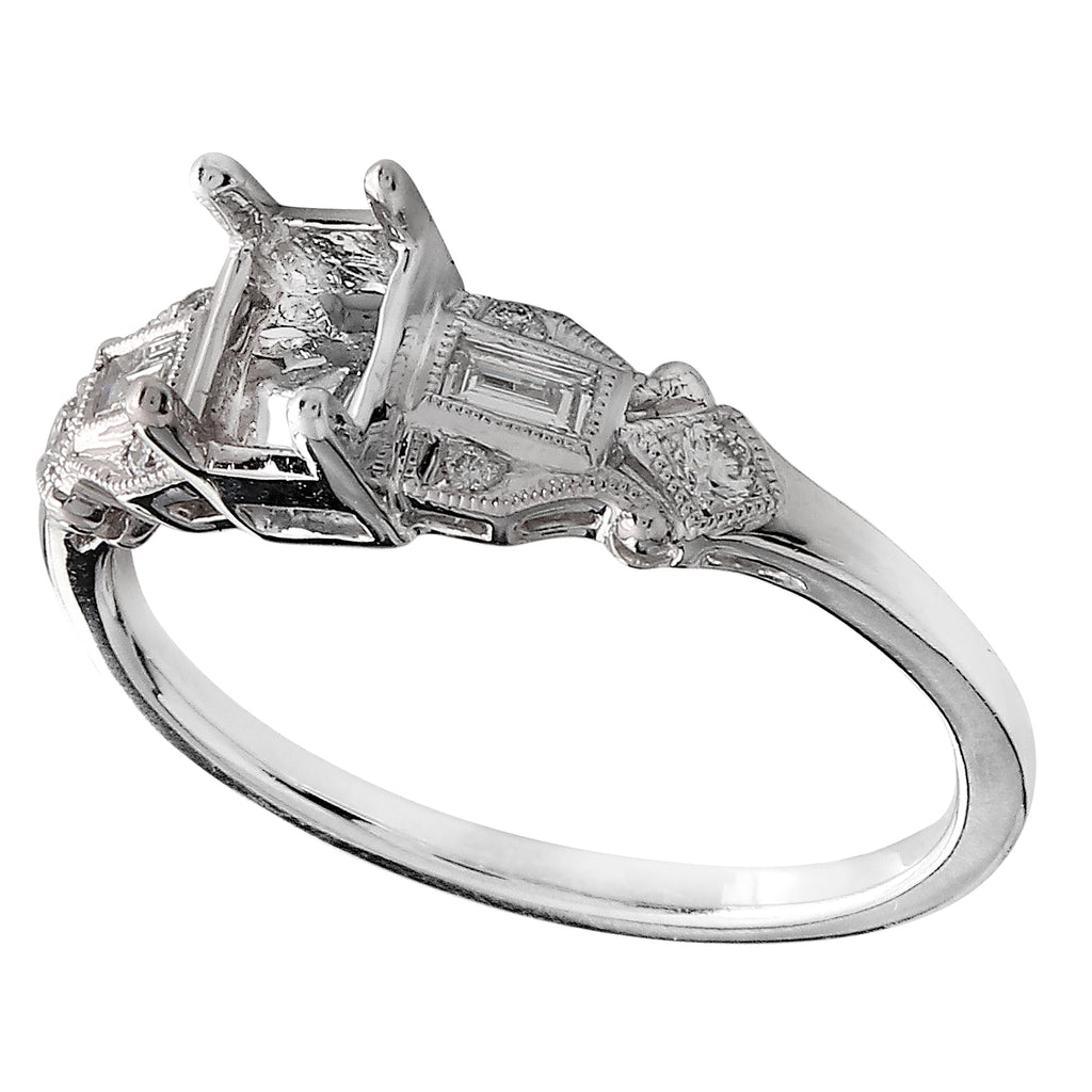 Vintage Inspired Emerald Cut Diamond Center Engagement Semi-Mount Ring