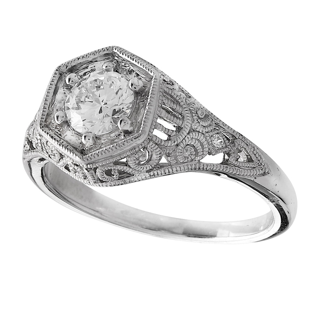 Vintage Inspired Hexagon Halo Diamond Semi-Mount Ring