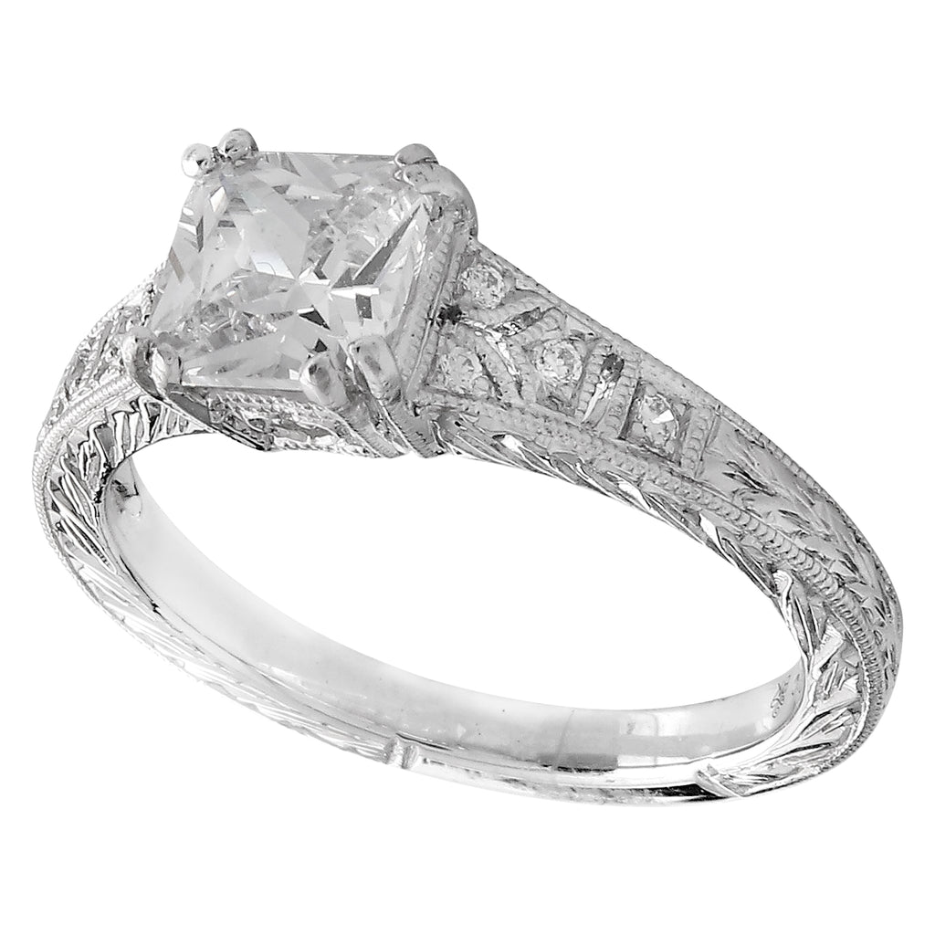 Vintage Inspired Emerald Cut Diamond Center Engagement Semi-Mount Ring